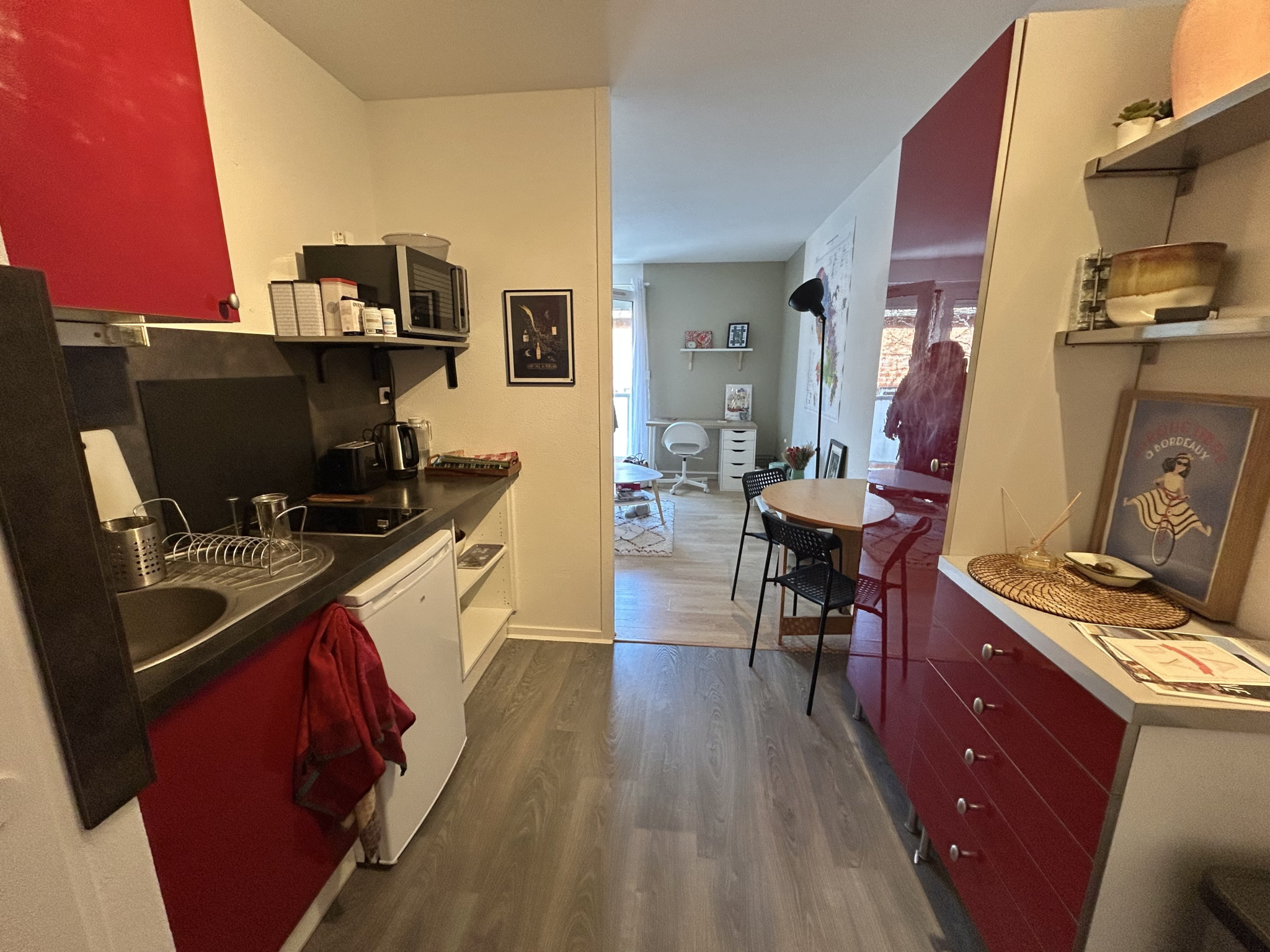 Il se compose d’une entrée avec petite cuisinse ouverte entièrement équipée, d’une agréable pièce de vie avec coin bureau ouvrant sur un balcon sans vis-à-vis, ainsi que d’une salle de bains avec WC.